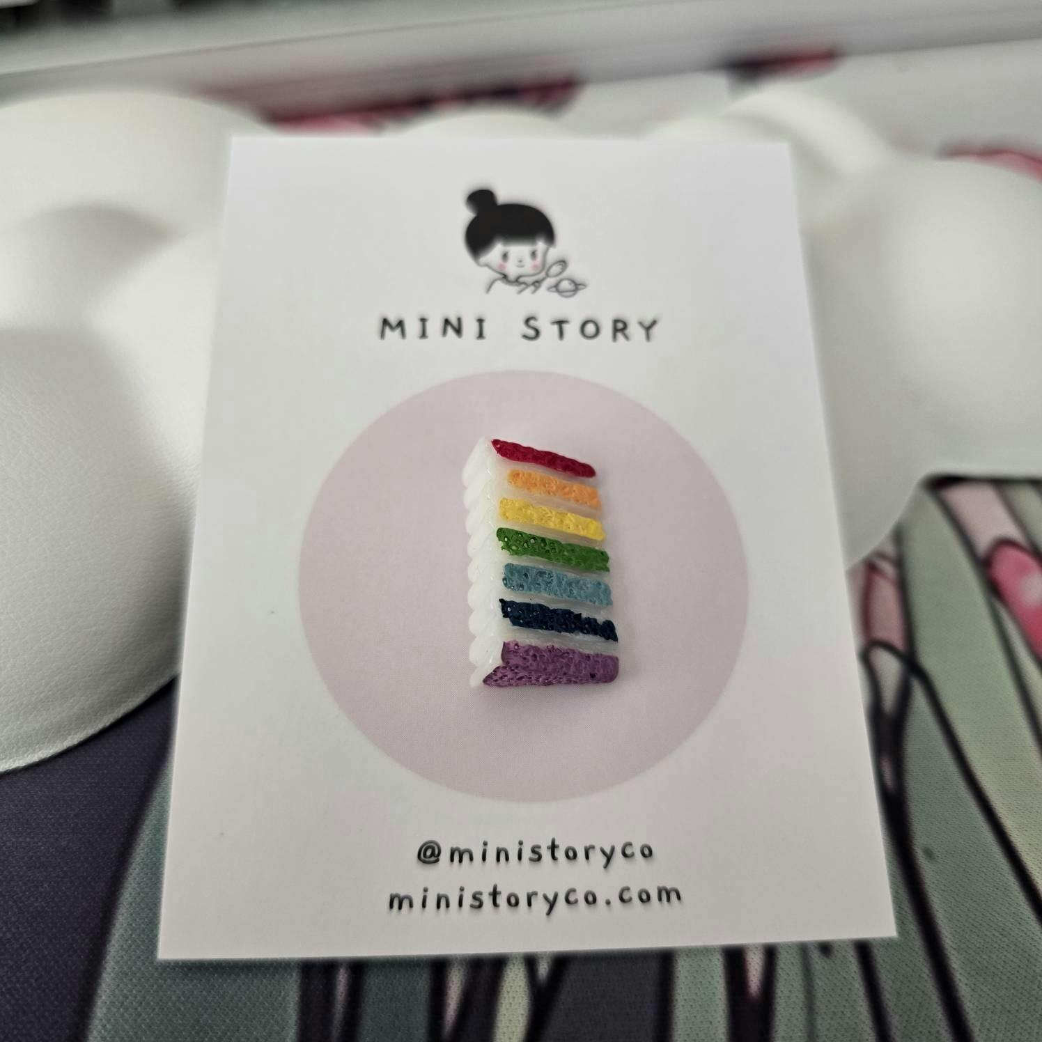 This pin is so cute!! The shop owner was great and reached out when mailing it out to let me know it was on its way. It’s indeed, a little piece of rainbow cake and a great addition to my pin collection.